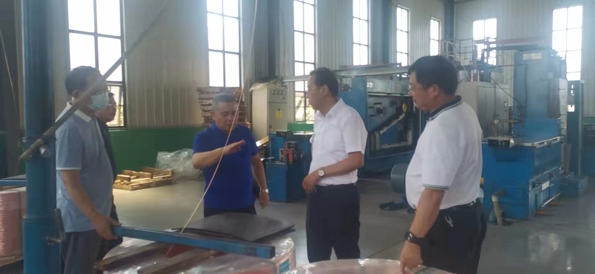 2022年6月17日上午 市科技局楊局長、縣委常委杜縣長、縣科經(jīng)局何局長一行來公司調(diào)研